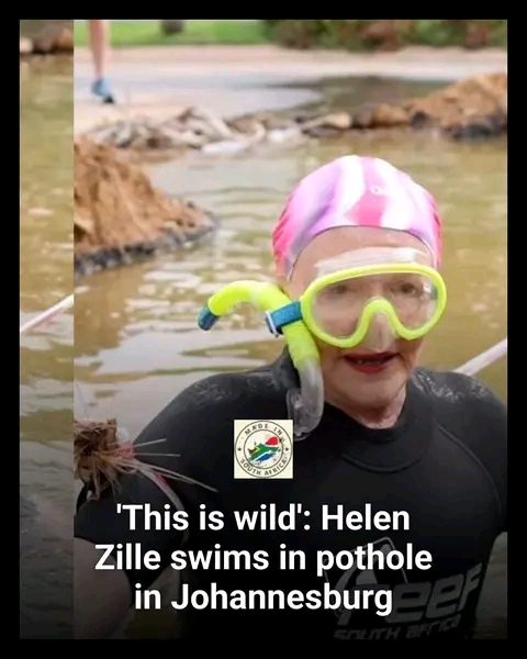 Hellen Zille highlights Johannesburg’s ongoing pothole problem with a swim, showing how burst pipes affect residents’ daily lives