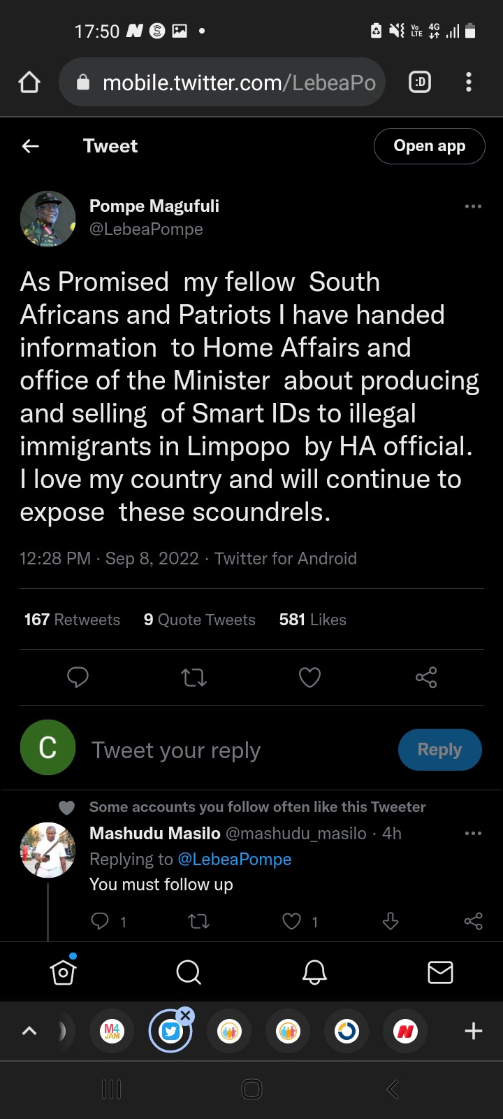 The guy who exposed that there was a Home Affairs official selling and producing smart IDs for illegal immigrants, gave updates of what is happening on his Twitter page. He said that he has reported the Home Affairs official to the relevant authorities. ” As Promised my fellow South Africans and Patriots I have handed information to Home Affairs and office of the Minister about producing and selling of Smart IDs to illegal immigrants in Limpopo by HA official. I love my country and will continue to expose these scoundrels”.