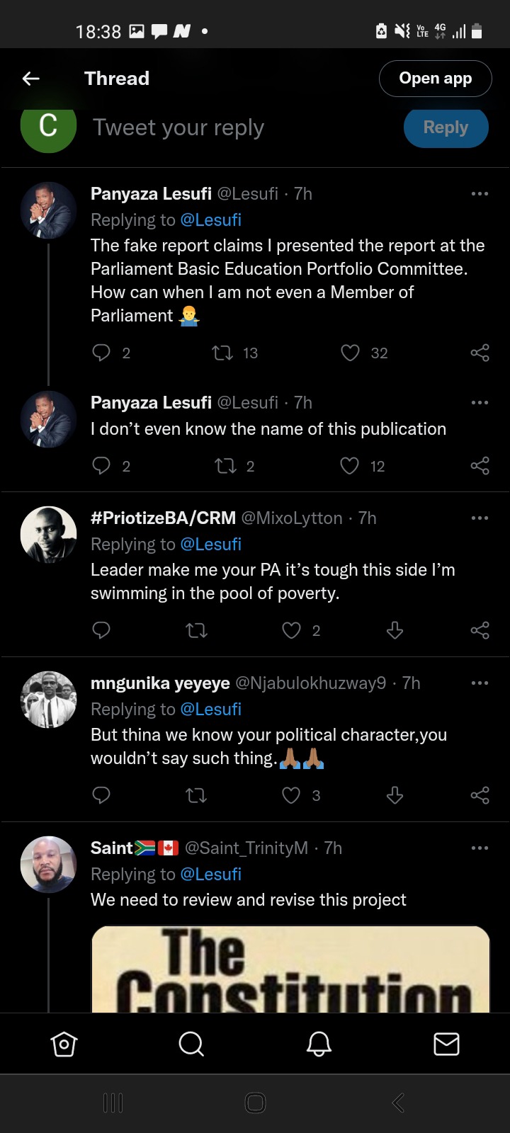 ” The fake report claims I presented the report at t Basic Education Portfolio Committee. How can when I am not even a Member of Parliament, I don’t even know the name of this publication”.