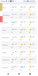 South Africa’s weather on February 28, 2026, shows a typical late summer mix of mild mornings warming into sunny afternoons across major cities, as captured in a recent mobile forecast screenshot.